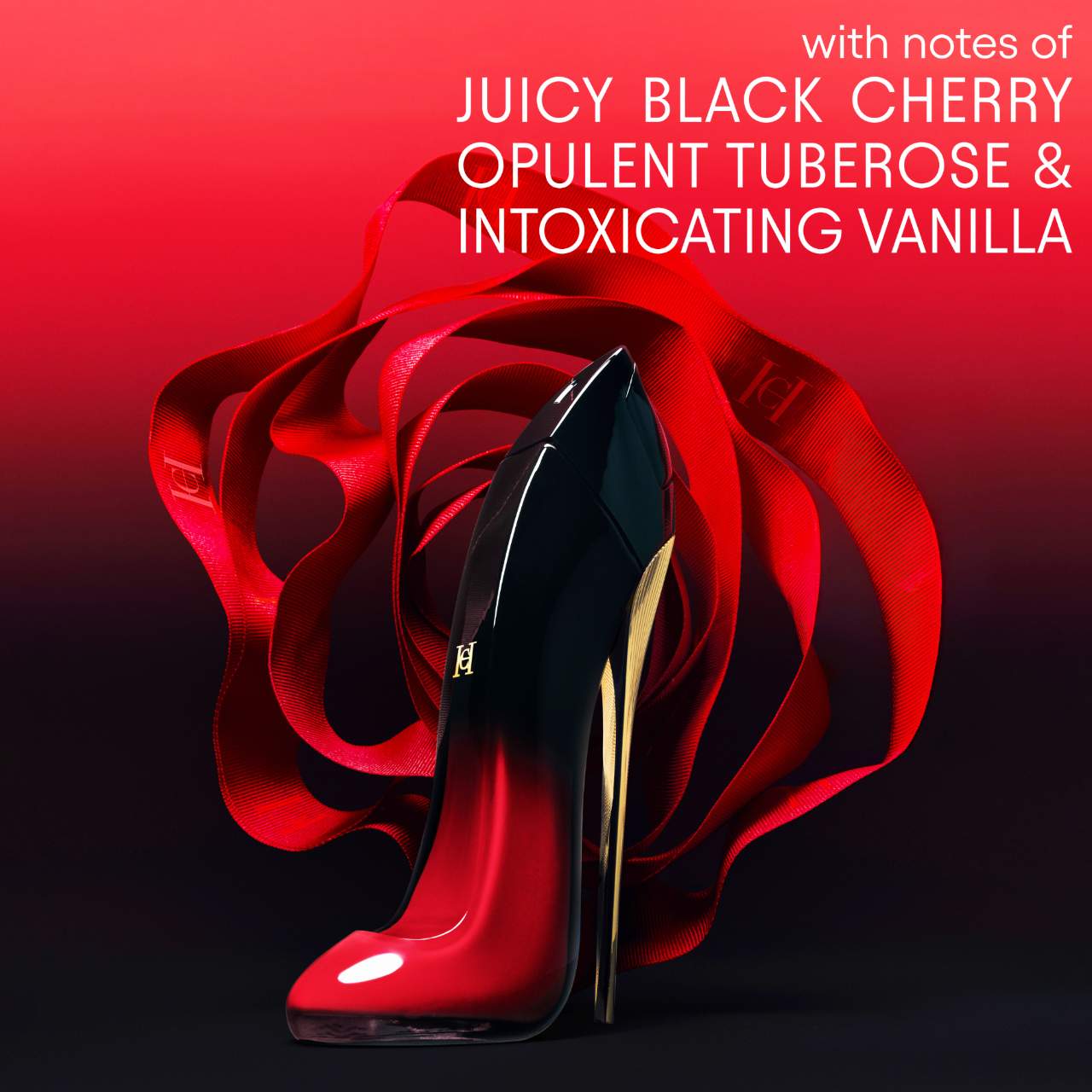 About the Bottle: Very Good Girl Elixir reaches new heights of seduction with a red-to-black gradient stiletto contrasted with a glimmering gold heel.