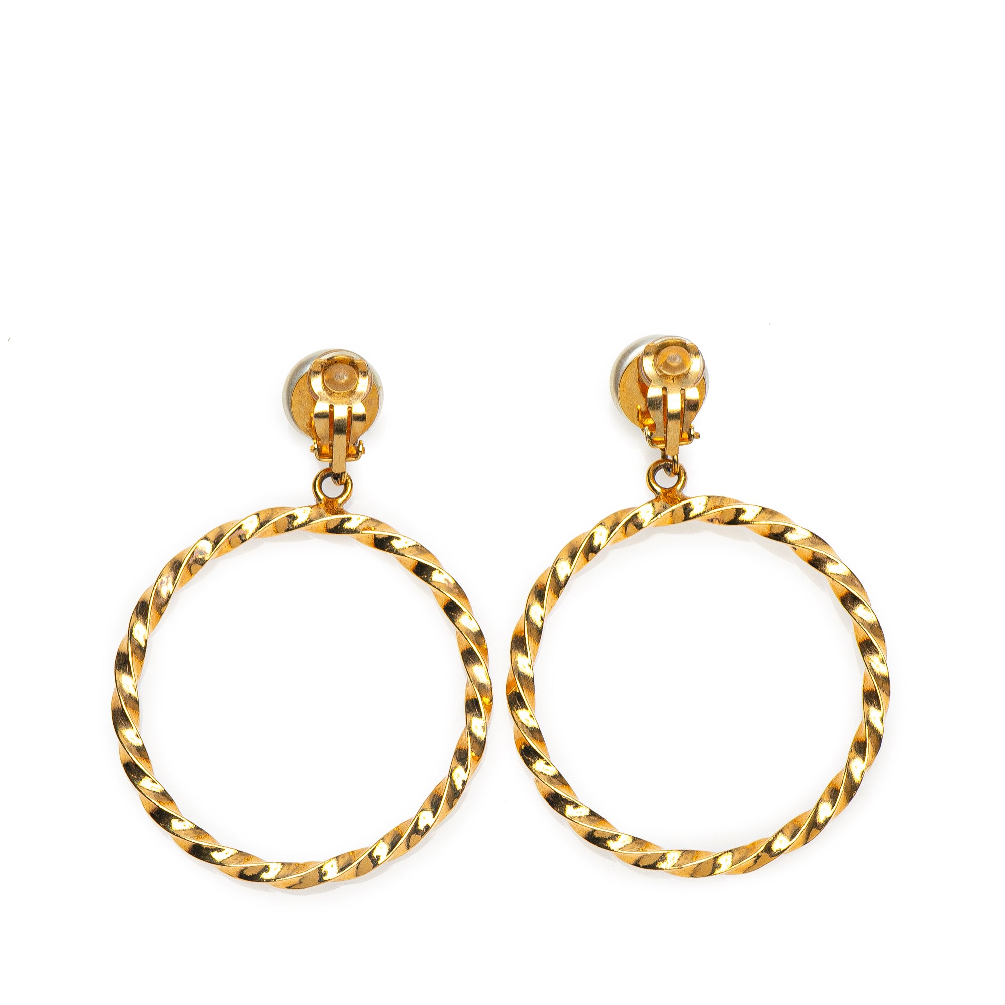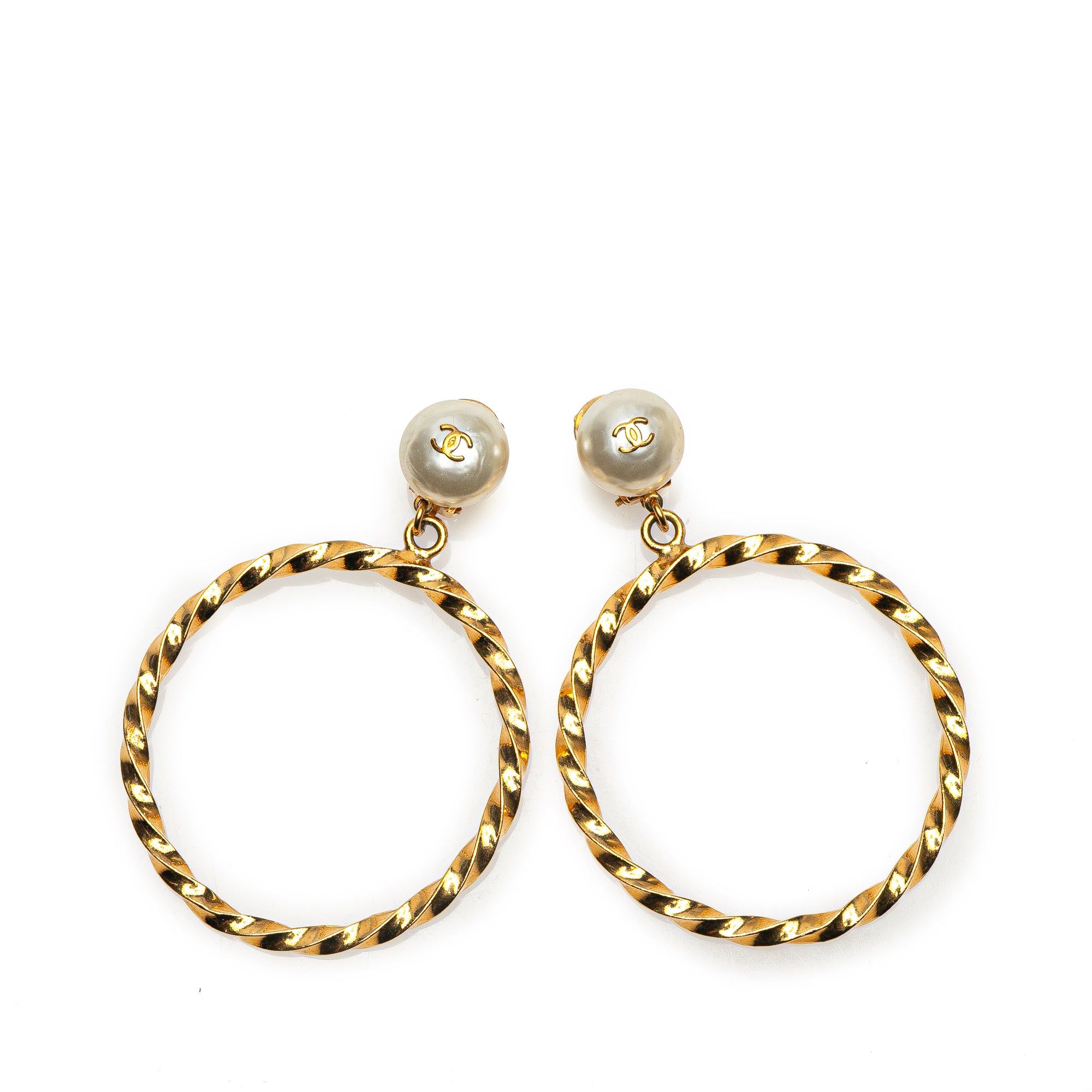 Style: Chanel CC Gold Plated Big Hoop Pearl Clip On Earrings Gold