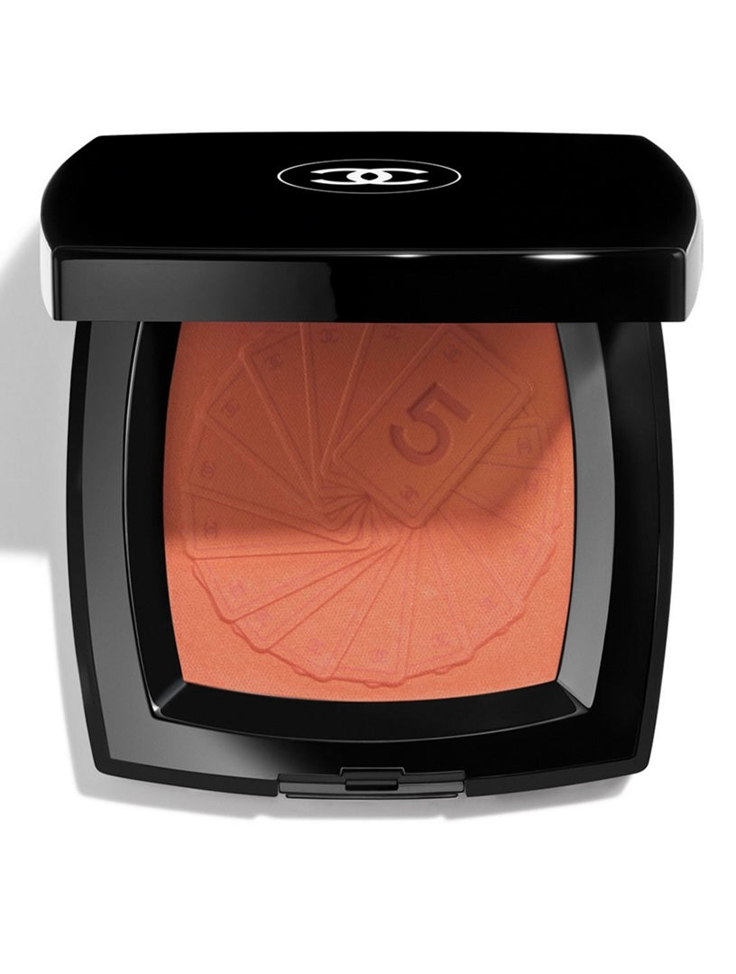 The powder is embossed with a deck of tarot cards, on which the number 5—Mademoiselle's lucky number—and the emblematic double C monogram appear.