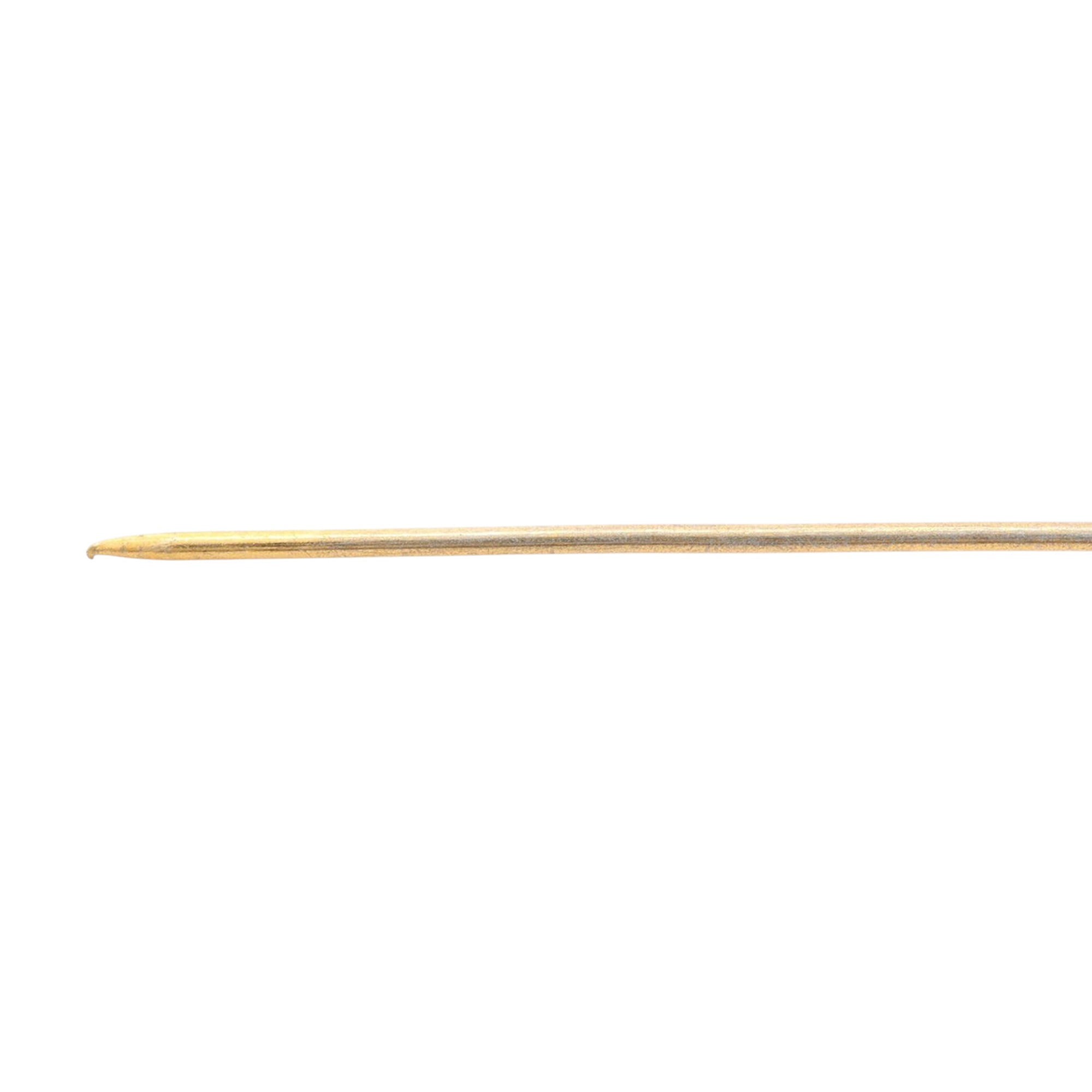 This brooch features gold-plated metal body with ribbon design and back pin closure.