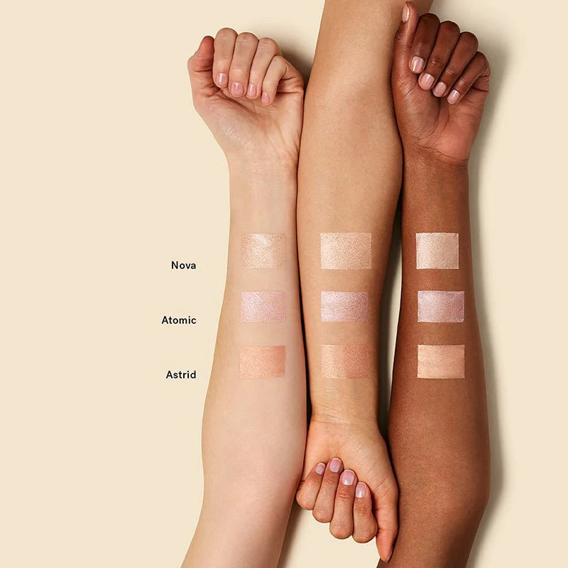 ATOMIC: A soft pink pearl that leaves a natural, lit-from-within glow. Ideal for fair to light skin tones.